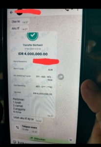 Konflik ini semakin memanas seiring beredarnya bukti transfer sejumlah uang jutaan rupiah yang diduga kuat mengarah kepada oknum Ketua RT setempat berinisial LS. Dalam bukti transfer tersebut, tertera keterangan yang mengindikasikan bahwa uang tersebut digunakan untuk “mengamankan” proses perizinan pabrik di tengah penolakan warga.